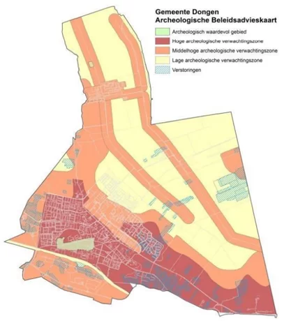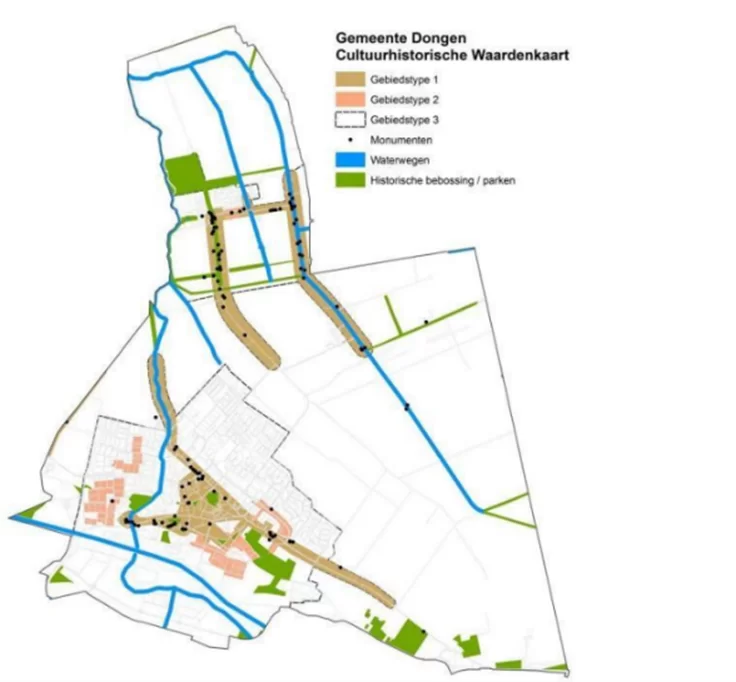 Het Dongens landschap van historische bebouwingslinten met karakteristieke bebouwing en de stichten (oude verbindingswegen) vormen een belangrijk kenmerk van onze gemeente. Niet alleen de kern Dongen kenmerkt zich door lintbebouwing langs de (doorgaande) wegen, ook de kernen ’s Gravenmoer, Klein-Dongen en Vaart zijn ontstaan rond lintbebouwing. Rondom de historische bebouwingslinten is de verwachting op archeologisch waardevolle vondsten middelhoog tot hoog.